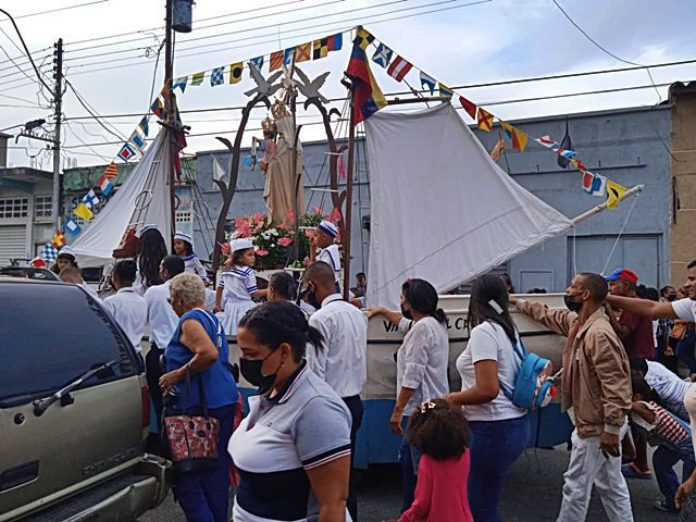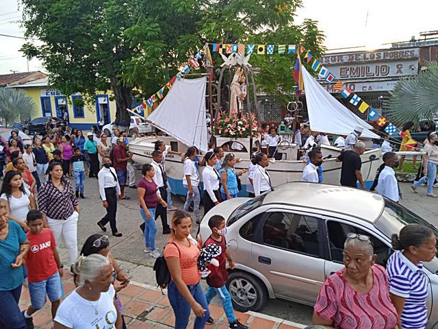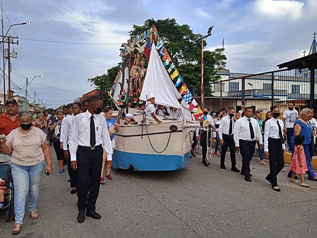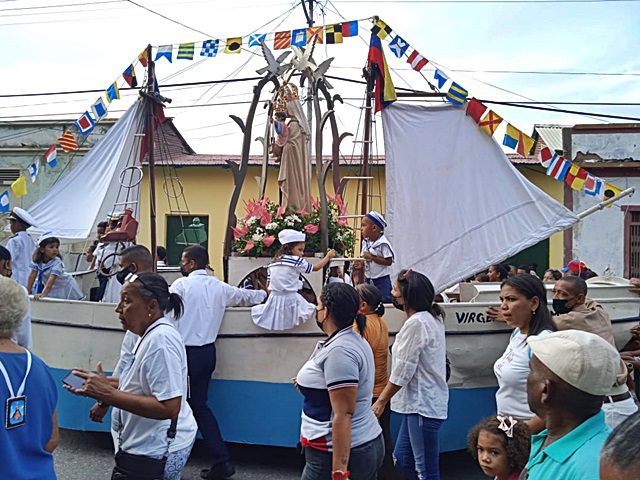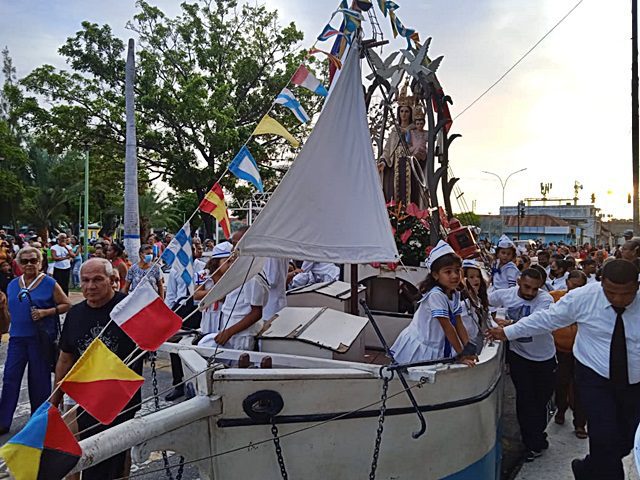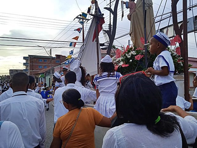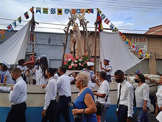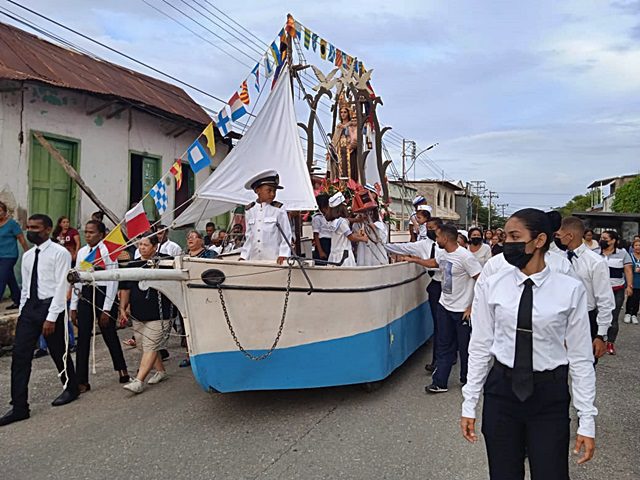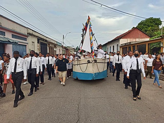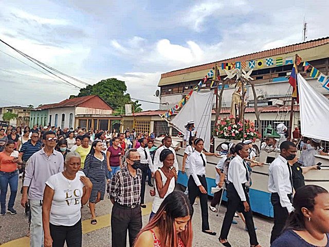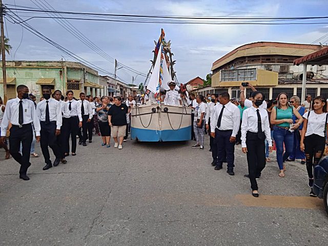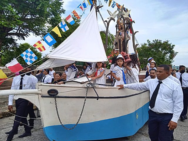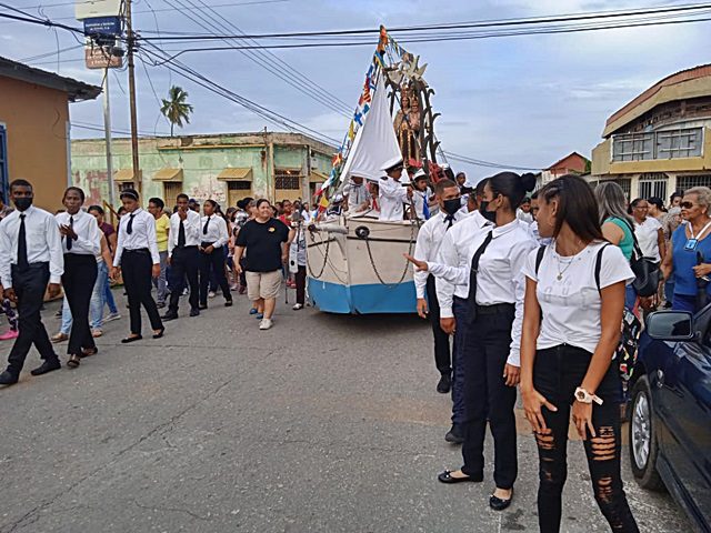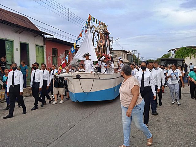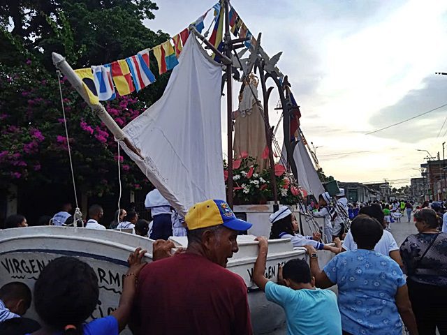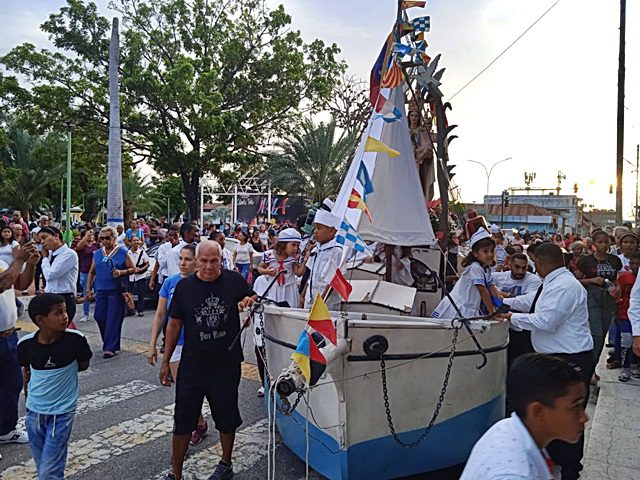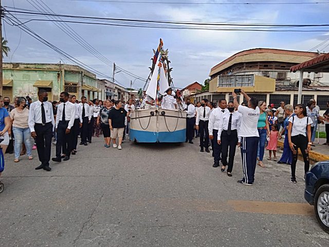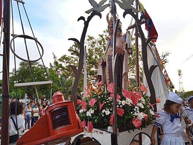 En la tarde, para concluir con las actividades religiosas, se efectuó la procesión con la imagen de la virgen en su típica embarcación por las calles de Güiria, con la ferviente participación de los fieles, quienes recuerdan así año tras año la llegada de esta imagen y su celebración fervorosa en Güiria.