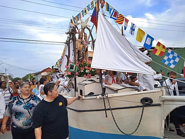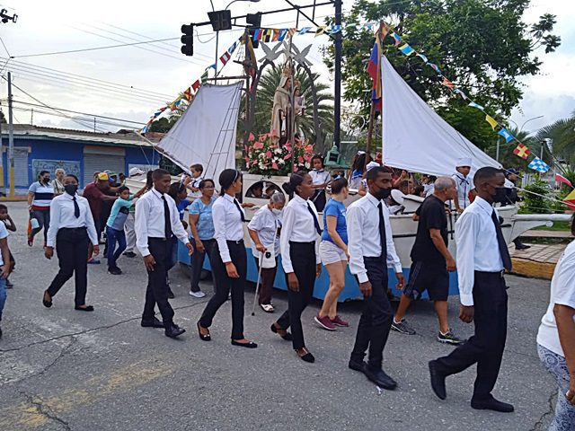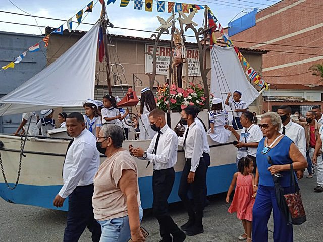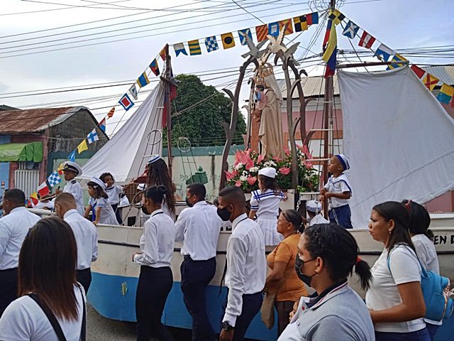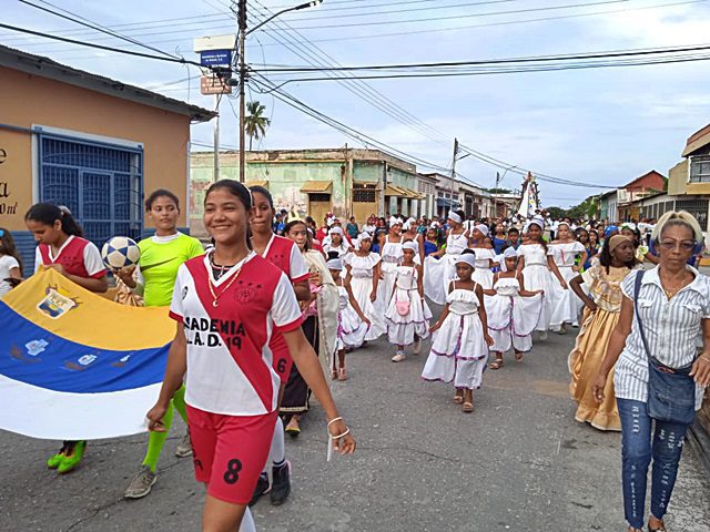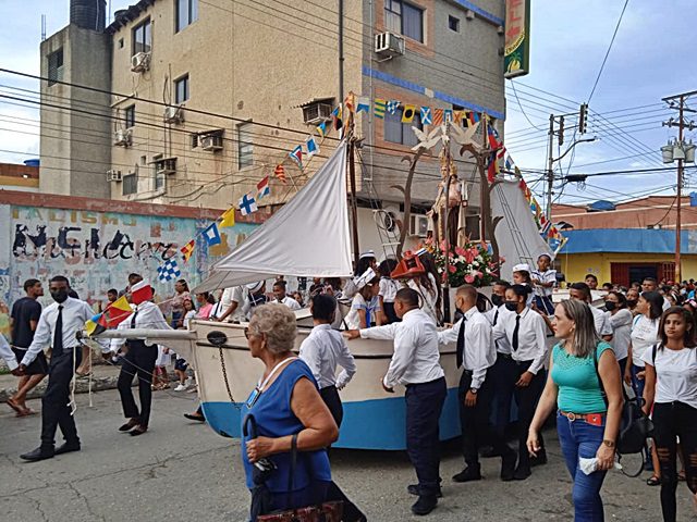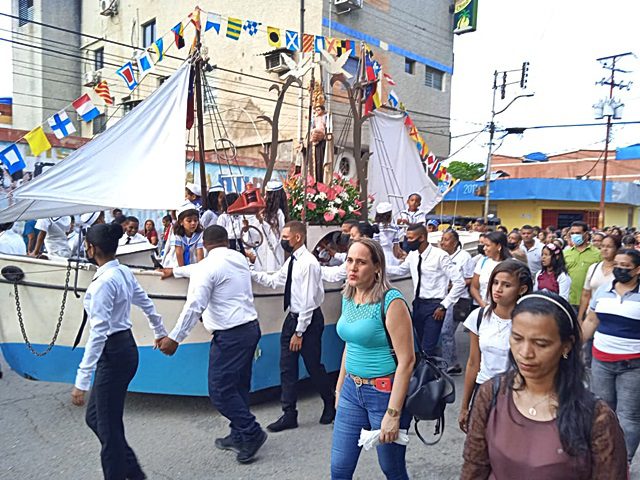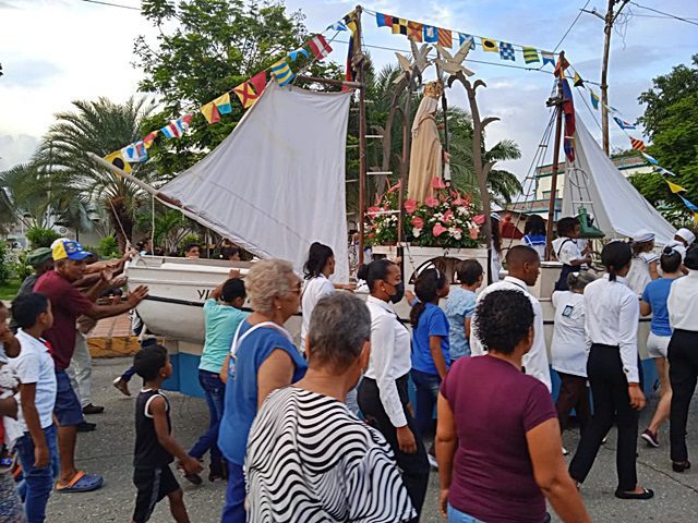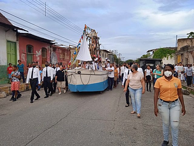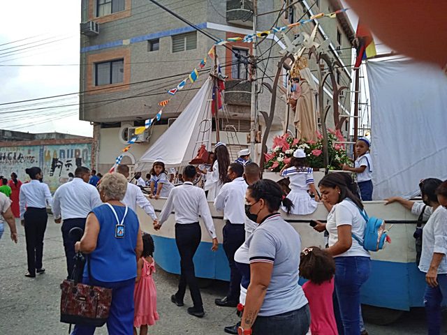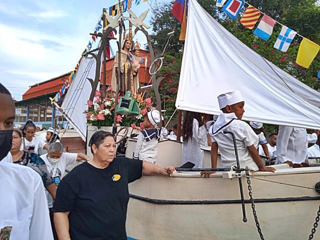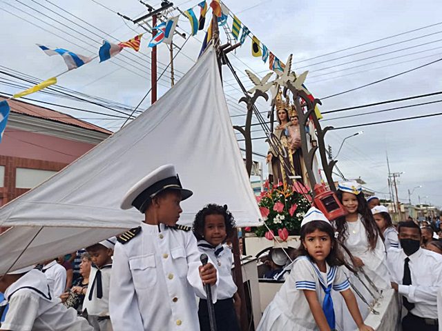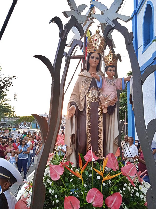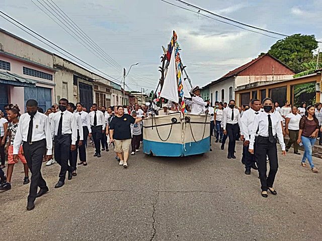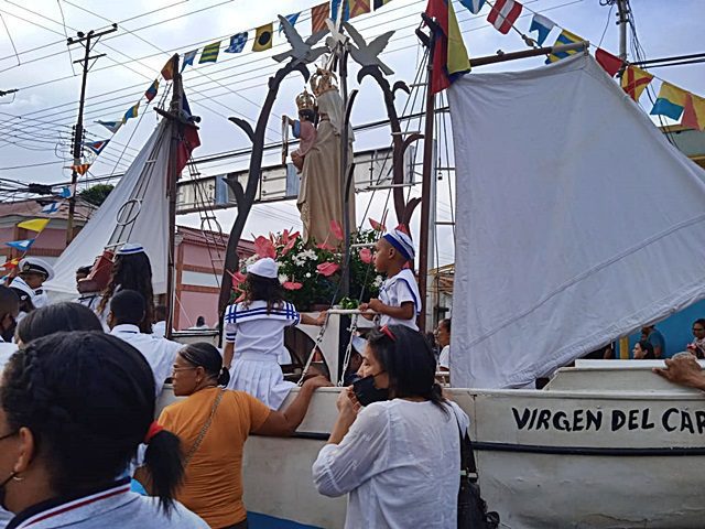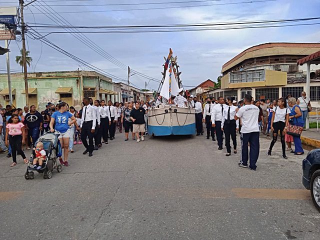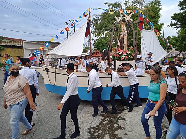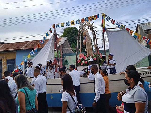 En la tarde, para concluir con las actividades religiosas, se efectuó la procesión con la imagen de la virgen en su típica embarcación por las calles de Güiria, con la ferviente participación de los fieles, quienes recuerdan así año tras año la llegada de esta imagen y su celebración fervorosa en Güiria.